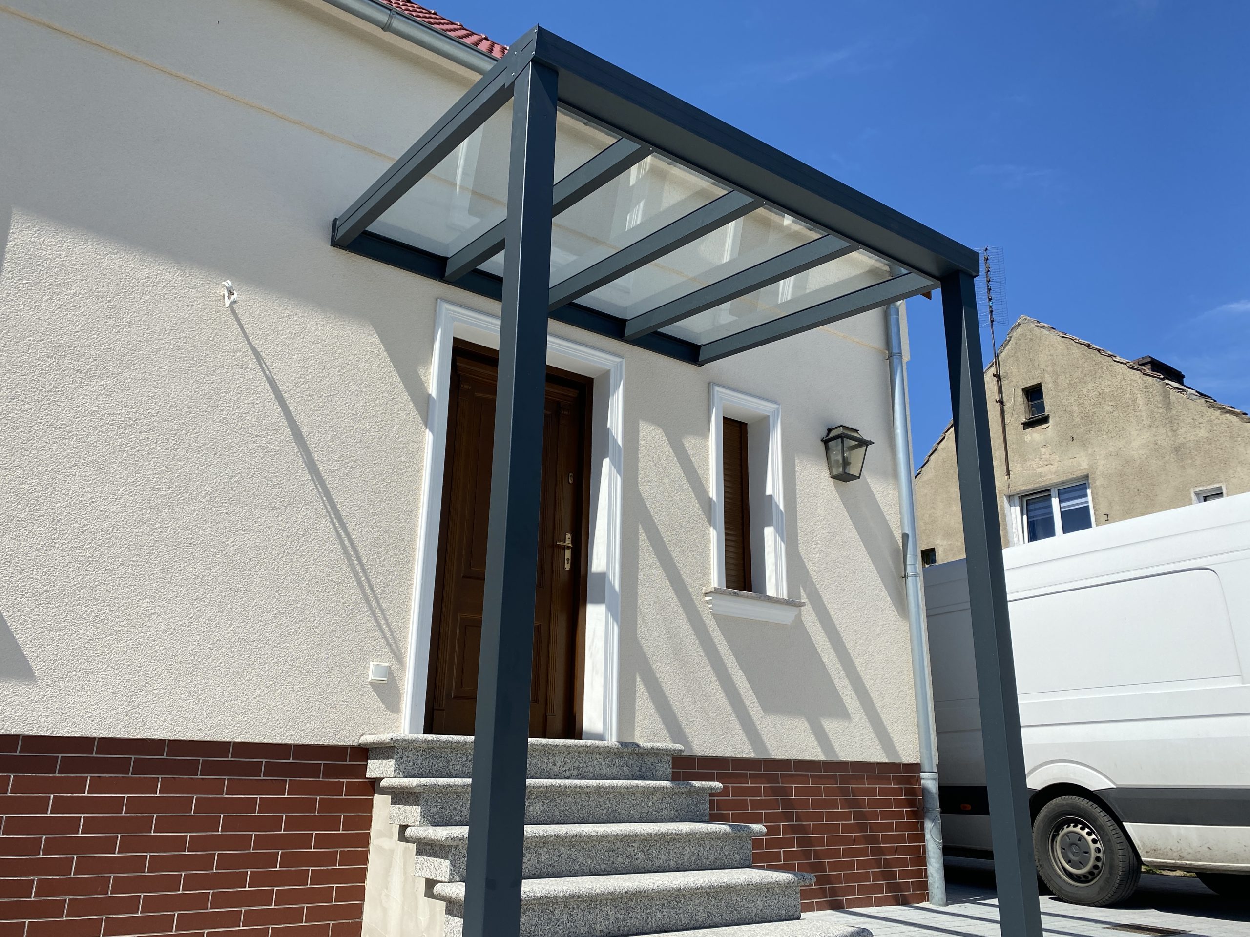 Zadbaj o elegancki i praktyczny wygląd wejścia do Twojego domu. Nasze zadaszenia drzwi wejściowych łączą w sobie nowoczesny design z niezawodną ochroną przed zmiennymi warunkami atmosferycznymi.
